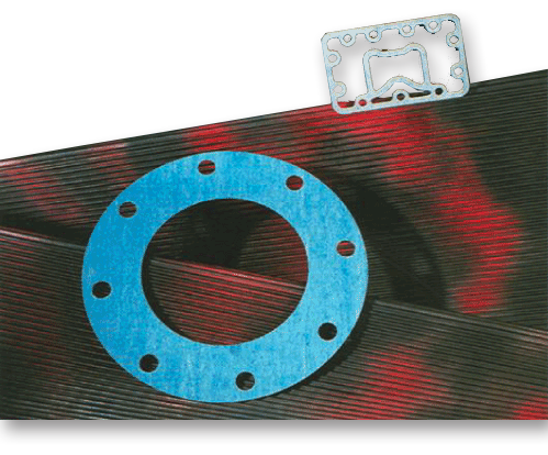 Special GYLON gasketing with a perforated stainless steel insert for agressive chemicals and hostile environments where safety and blow-out resistance is essential