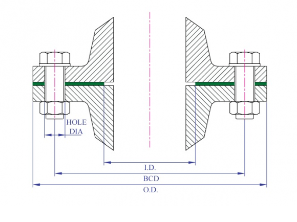 consists of a highly compressible outer layer of microcellular PTFE and rigid PTFE core which reduced the cold flow and creep. Where by both components have been sintered together homogeneously. These materials are made of pure PTFE without fillers. Style 3545 provides a very soft surface, particularly suited for flanges with uneven surfaces and where bolts can not be tightened strongly.